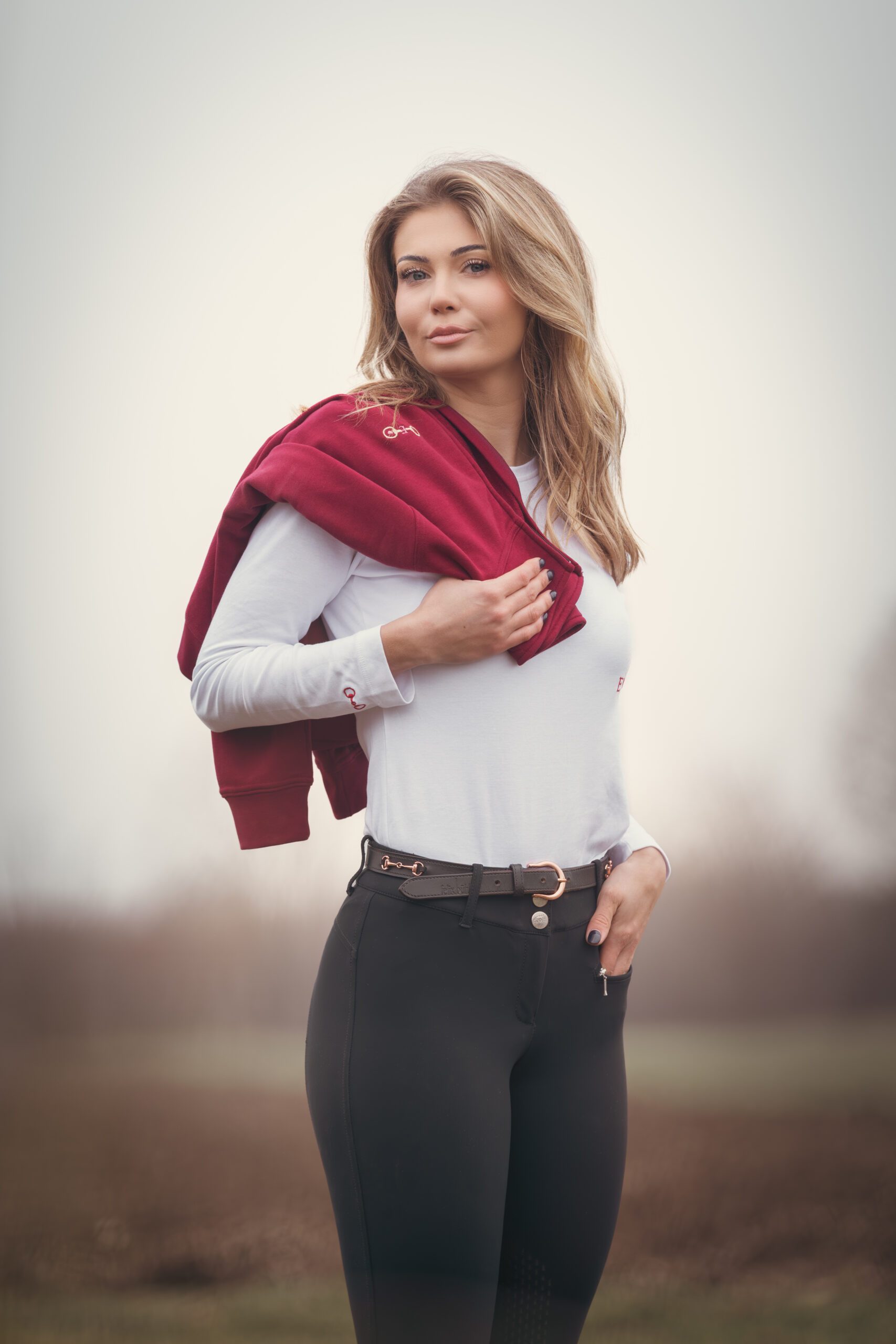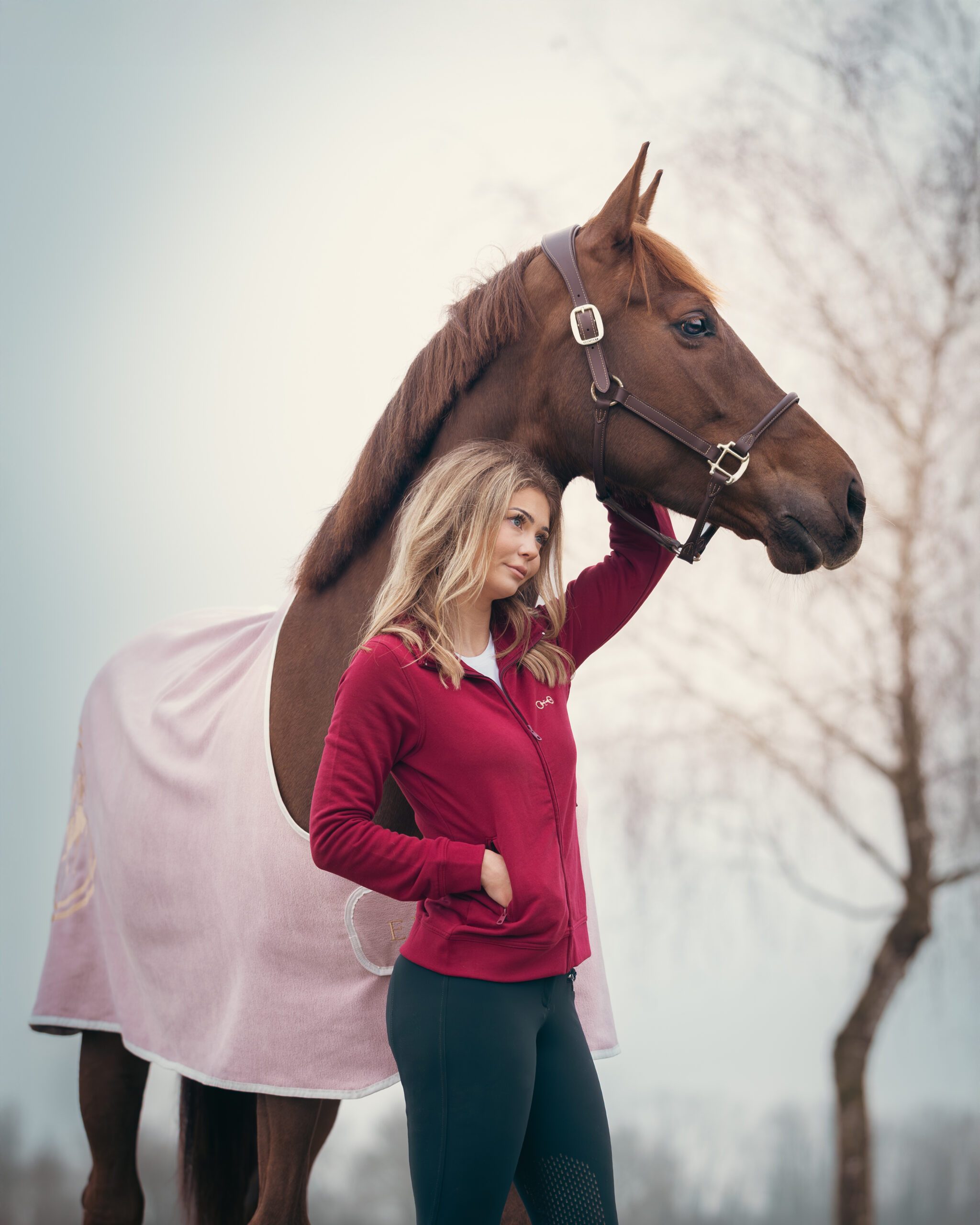 The refined dusty rose shade pairs beautifully with neutral riding tones, while subtle ENIBO detailing adds a signature premium touch. A full front zipper and practical pockets make it as functional as it is stylish.